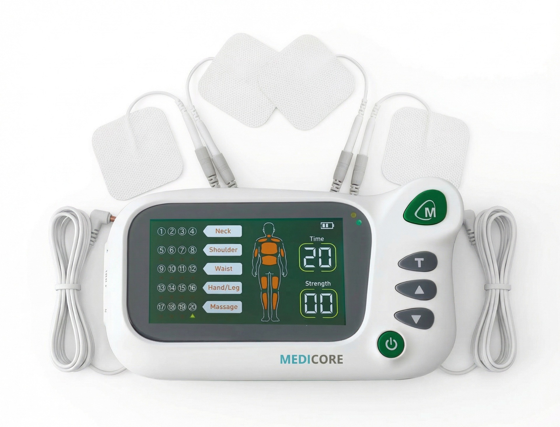 MEDICORE 1.0 – Muskuļu relaksācijas un labsajūtas garants MEDICORE 1.0 ir moderna masāžas ierīce , kas palīdz atslābināt muskuļus, locītavas un saites pēc fiziskas slodzes vai stresa. Ierīce izmanto drošus elektriskos impulsus, kas stimulē muskuļus un veicina relaksāciju, sniedzot sajūtu līdzīgu masāžai tieši mājās. Komplektā ietilpst: Ierīce MEDICORE 1.0 Ķermeņa elektrodi Nepieciešamie vadi Lietošanas instrukcija Galvenās priekšrocības: Atslābina muskuļus un locītavas – palīdz samazināt spriedzi un nogurumu. Relaksācija un labsajūta – maigi līdz intensīvi stimulē muskuļus, veicina ķermeņa un prāta atpūtu. Trigerpunktu aktivizēšana – palīdz mazināt saspringuma punktus un uzlabo kustību brīvību. Stimulē asinsriti – viegli impulsu efekts palīdz atjaunot muskuļu tonusu un uzlabot vietējo mikrocirkulāciju. Kāpēc izvēlēties MEDICORE 1.0? Kompakta un viegli lietojama mājās Ērti elektrodi un vadi pielāgojami dažādām ķermeņa zonām Nav medicīnas ierīce - paredzēta vispārīgai ķermeņa masāžai. MEDICORE 1.0 ir ideāls sabiedrotais pēc darba dienas, treniņa vai ilgstoša sēdēšanas, lai mazinātu spriedzi muskuļos un uzlabotu ķermeņa komfortu.